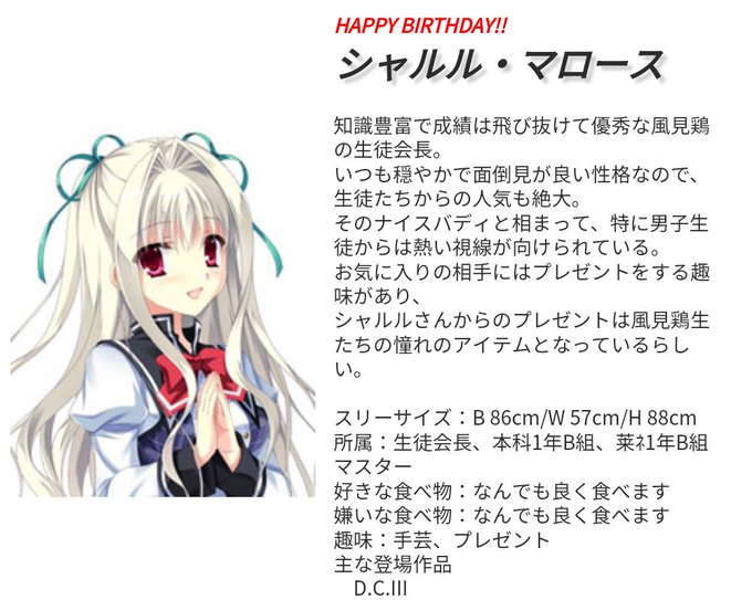 森蔵 ダ カーポ3の芳乃シャルルさん シャルル マロースさん お誕生日おめでとうございます シャルル マロース生誕祭 シャルル マロース生誕祭17 芳乃シャルル生誕祭 芳乃シャルル生誕祭17 ダ カーポ3 Dciii A Dc T Co